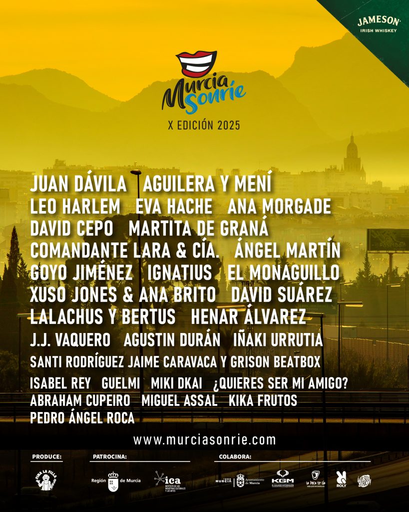 El Festival presenta una programación de 51 actuaciones en 19 escenarios de 14 diferentes municipios de la Región, y contará con las actuaciones entre otras de Aguilera y Mení con ‘Misión Impro-sible’, Martita de Graná, Xuso Jones & Britten y su ‘Poco se habla!’, Goyo Jiménez con ‘Misery Class’, El Monaguillo ‘Efectiviwonder’, Mentes Peligrosas con Leo Harlem, Ana Morgade, Eva Hache y David Cepo, ‘Somos monos’ de Ángel Martín, Juan Dávila con ‘El Palacio del Pecado’, Comandante Lara & Cía; Henar Álvarez con ‘La Chochoctora’, Lalachus y Bertus con ‘Ke decirte k no sepas’, David Suárez con ‘Humor Blanco’, y Isabel Rey ‘Diva de barrio’. También Abraham Cupeiro, Miki D’Kai, Guelmi, Kika Frutos, Jaime Caravaca & Grison Beatbox y el show de QSMA de Mario Marzo y Dane Rivarola ‘¿Quién quiere ser mi amigo?’. Además, el festival presenta la ‘Noche de Comedia’ en el Teatro Circo de Murcia, con las actuaciones de JJ Vaquero, Iñaki Urrutia y Agustín Durán.